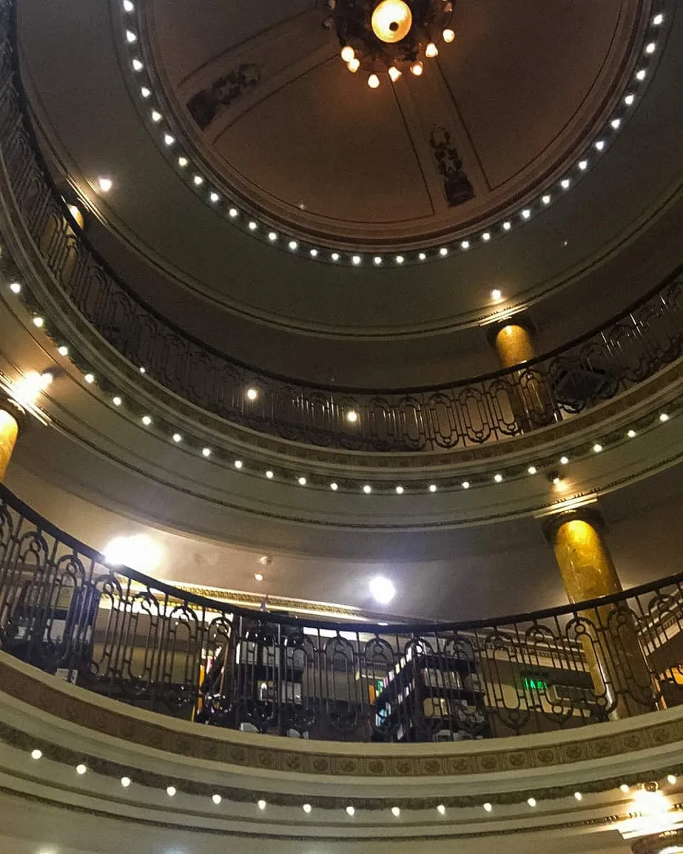 High ceilings. Ornate detailing. That central dome bathed in soft, dramatic lighting. It’s like stepping back a century, except instead of tango dancers, the stars are books.
