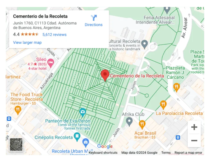 Location of La Recoleta Cemetery